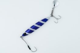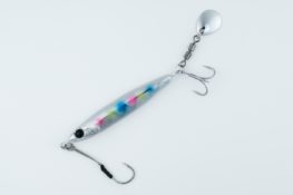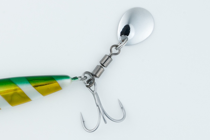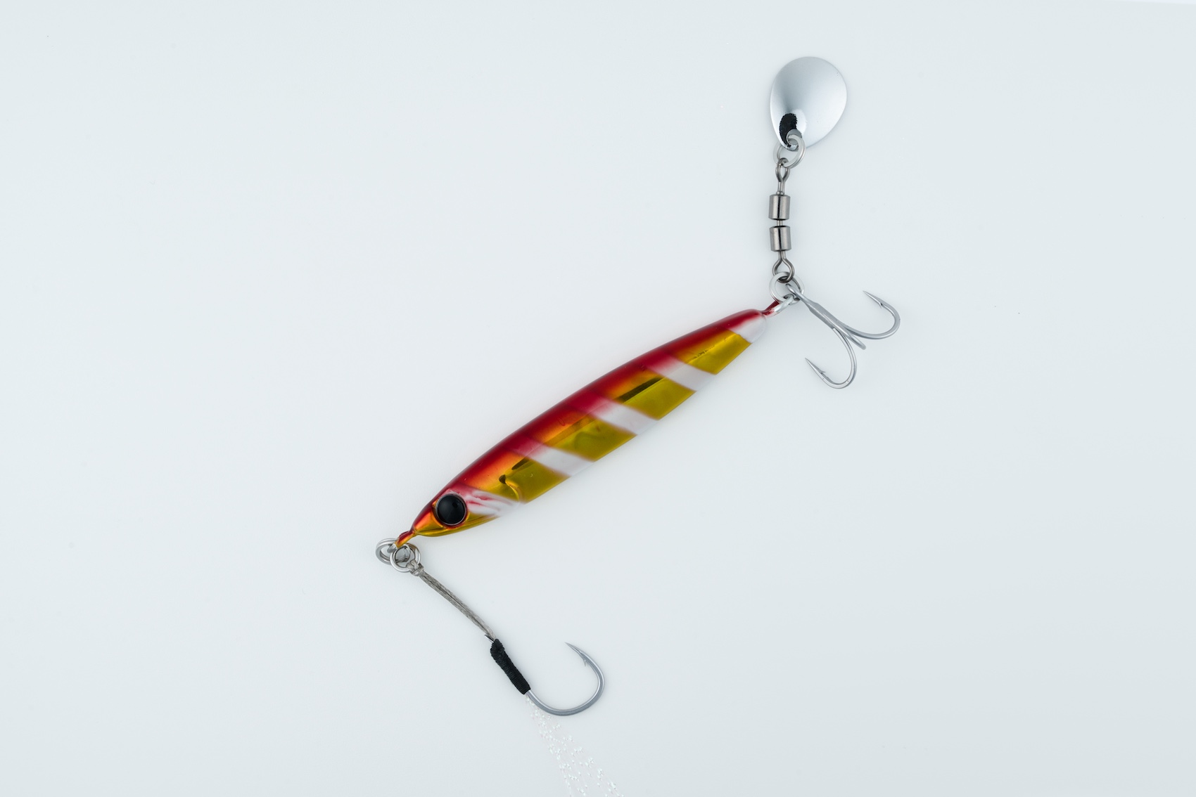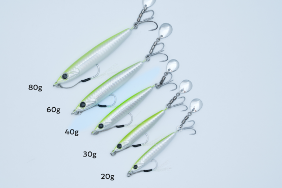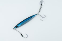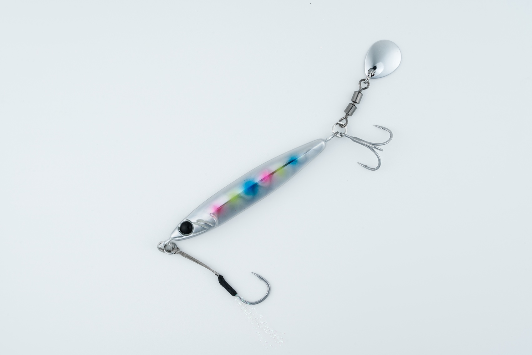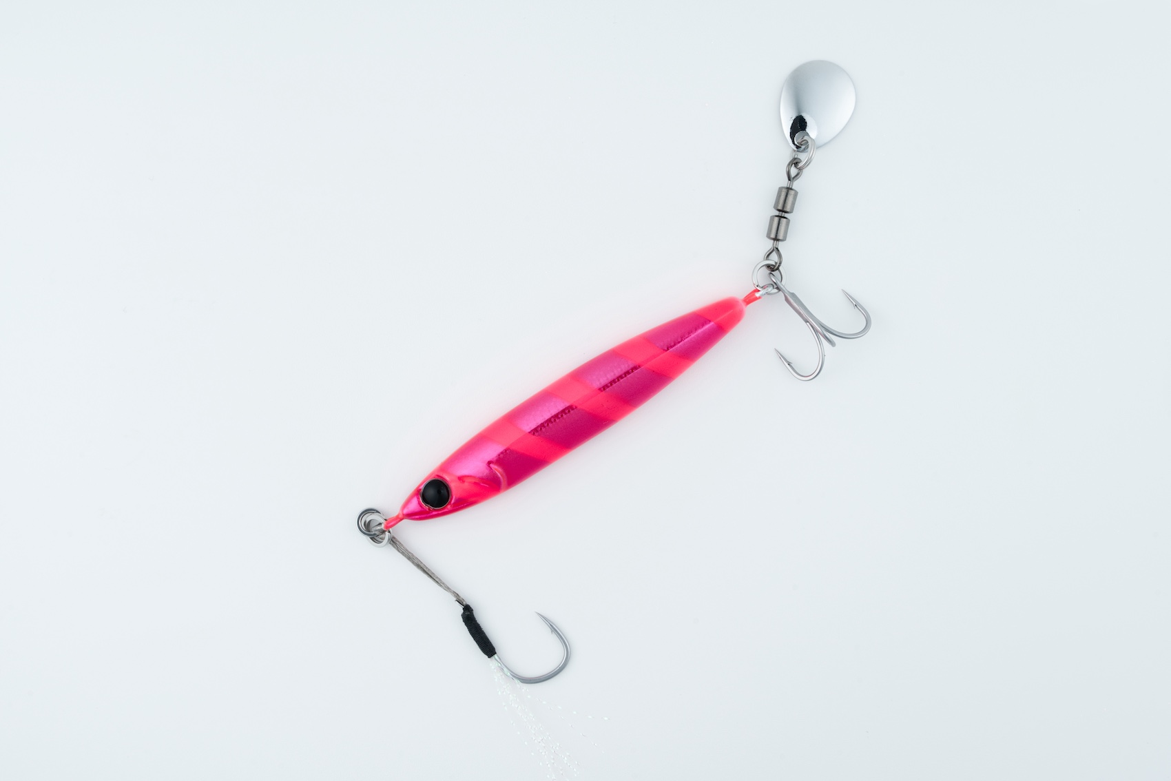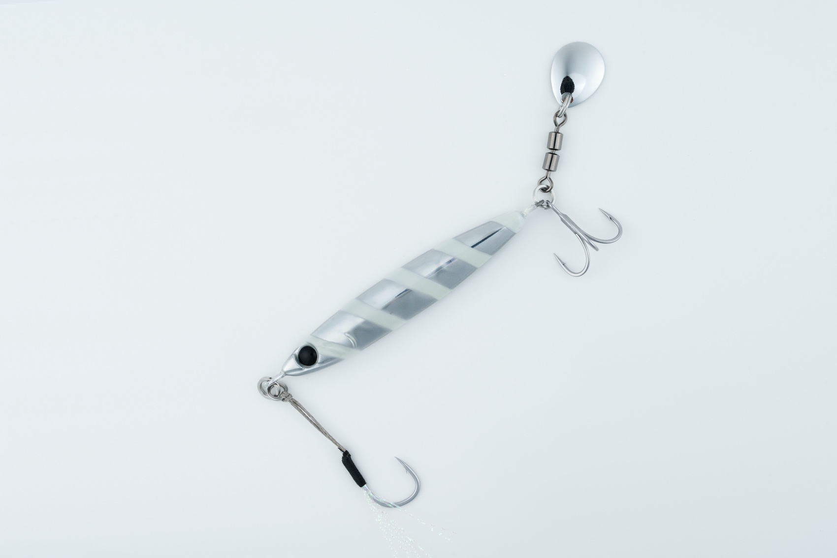 亜鉛合金(比重6.8)という低比重素材を採用したZサーディンをベースに、ブレイドチューンモデルとして再設計したZブレイド。左右対称の円柱型ボディに改良することで、ブレイドのアピール力と操作性を高いレベルで両立しました。低比重素材とブレイドの抵抗によってフォールスピードを抑え、狙ったレンジをより丁寧にトレース。フォール中にはブレイドが回転しながら強烈なフラッシングを生み、ターゲットの捕食本能を刺激します。また、後方重心設計と空気抵抗を抑えたボディ形状により、十分な飛距離も確保。広範囲を効率よく探ることができ、高速リトリーブ時でも水面へ飛び出しにくく、安定したスイミングでレンジをキープします。青物、フラットフィッシュ、太刀魚、ロックフィッシュなど、幅広いフィッシュイーターに対応するブレイド系メタルジグです。
